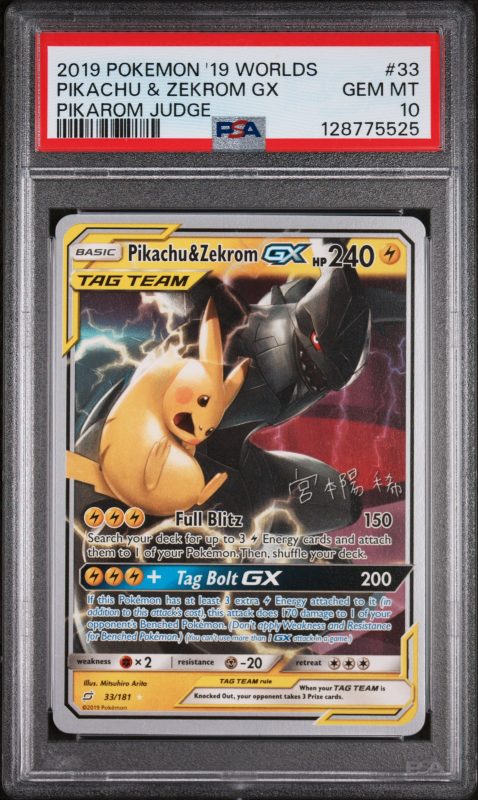 2019 Pokemon 2019 World Championships Deck: Pikarom Judge Pikachu Zekrom Gx #33 PSA 10